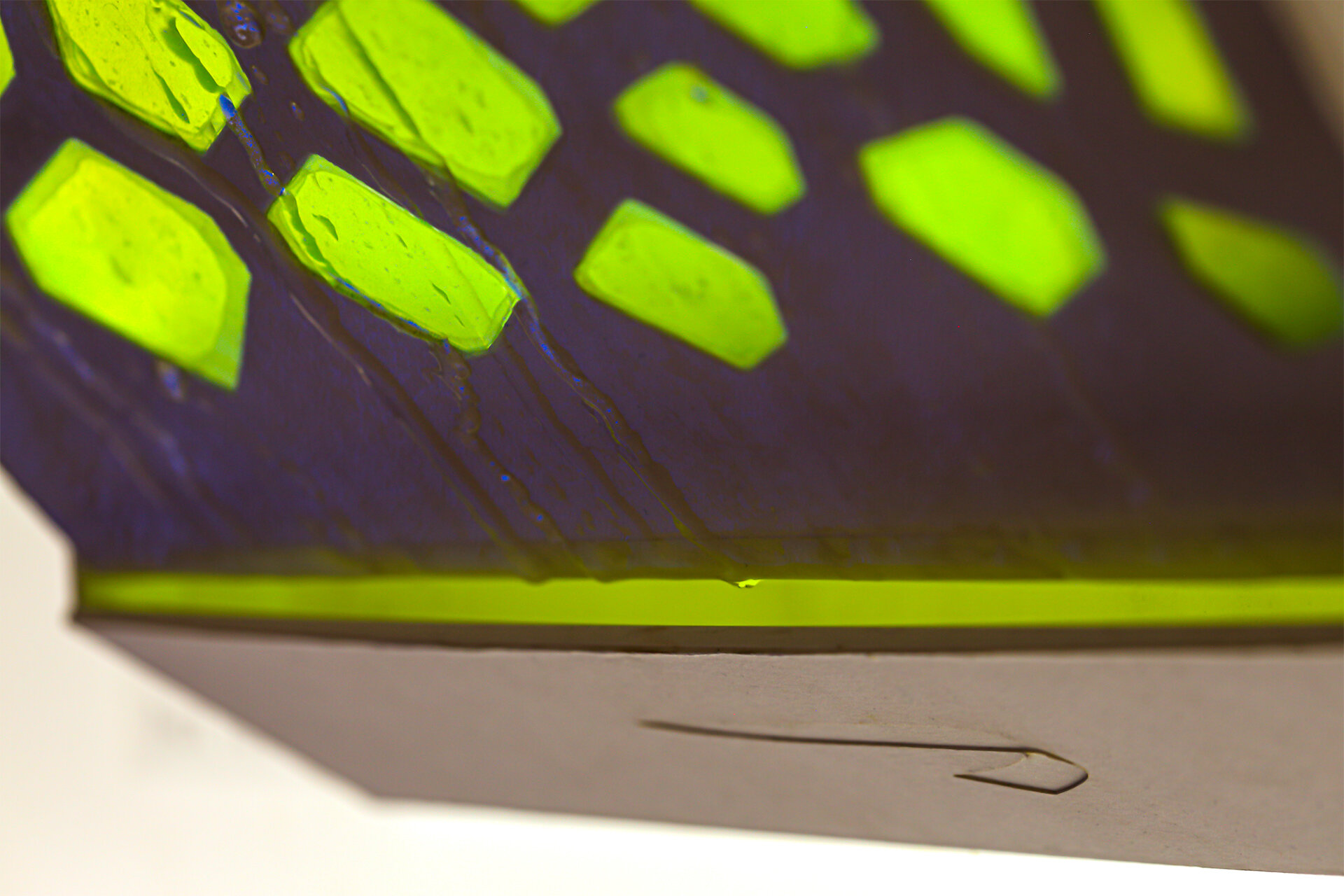 The structure was shown through a computationally generated cross-section of the fuselage, Oxygenation was represented with a life size body panel of the plane, with the chloroplast layer integrated. To demonstrate the energy generation, we designed a 3 cell cabin light module that explored how people might interact with the avionics onboard.